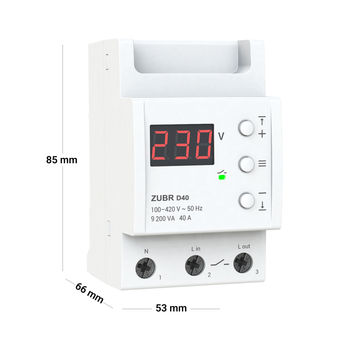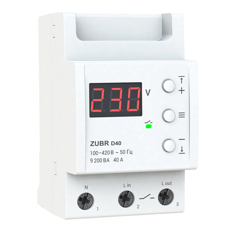 Реле напряжения ZUBR защищает подключенное электрооборудование от высокого и низкого напряжения, а также обрыва нуля.