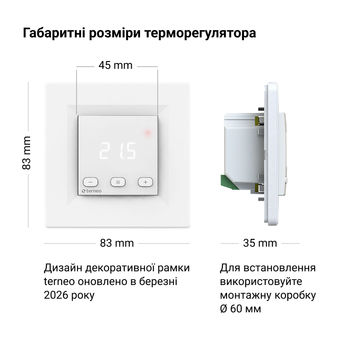 Терморегулятор, температурный датчик с проводом, декоративная рамка — все включено в комплект. Монтаж осуществляется в стандартный подрозетник диаметром 60 мм.