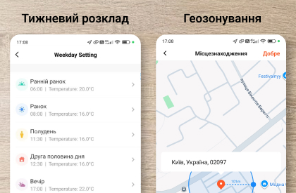 У додатку можна створювати сценарії автоматизації: наприклад, вмикати опалення за розкладом, при зміні температури або разом з іншими пристроями — освітленням, датчиками чи побутовою технікою.